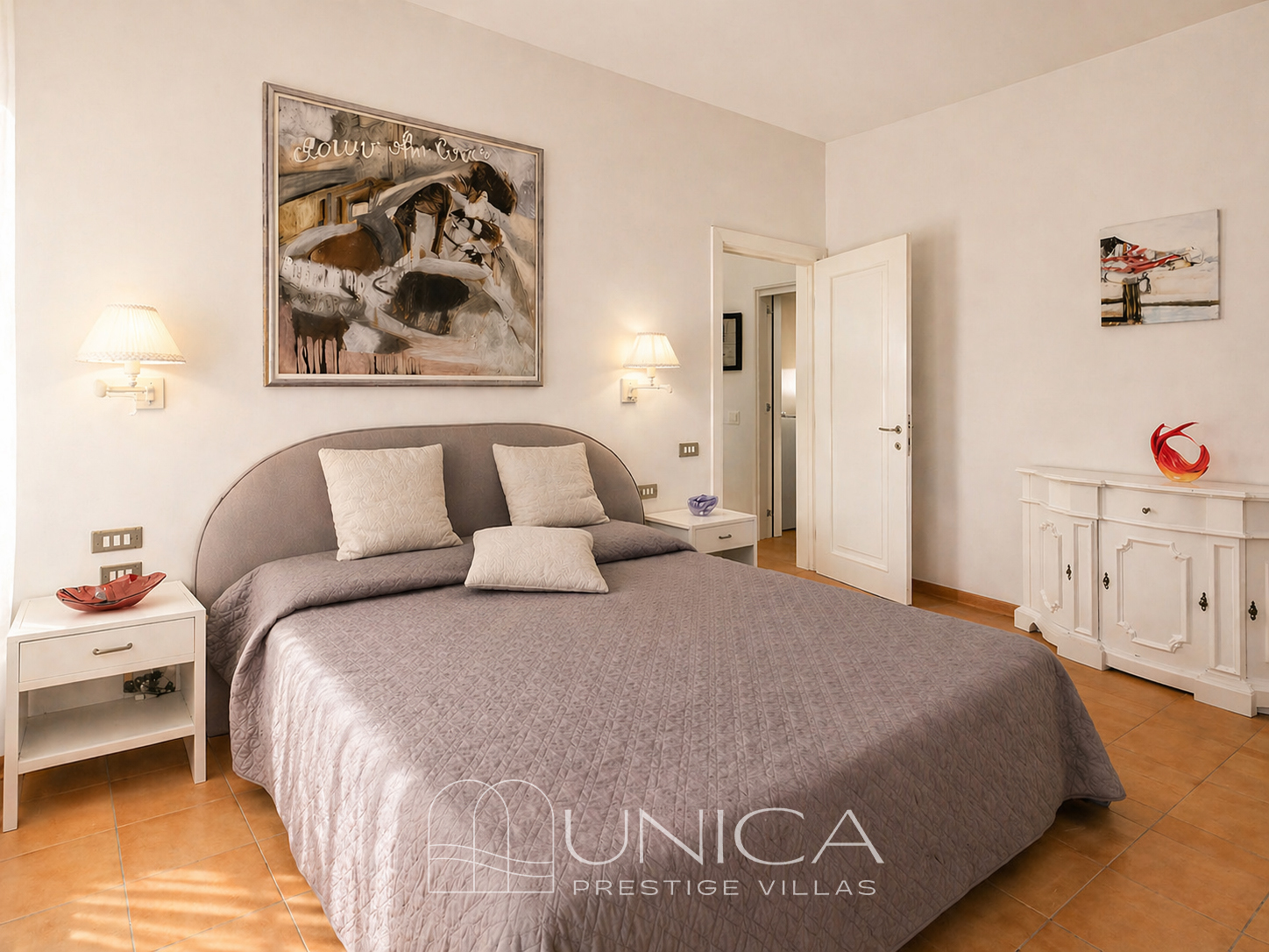 The interiors offer a rational and well-thought-out layout, suitable both for family life and hospitality. The living area consists of a sitting room with dining area and a separate kitchen, forming a functional and welcoming whole. The true strength of the home, however, lies in the layout of the sleeping area, arranged into two distinct and symmetrical sections, a solution that ensures order and greater independence between the spaces. Each section includes a double bedroom, a bathroom and a single bedroom, for a total of four bedrooms and two bathrooms. A particularly interesting configuration, which makes the apartment comfortable, well balanced and suitable both as a main residence and as a holiday home, with spaces capable of accommodating family and guests with ease.