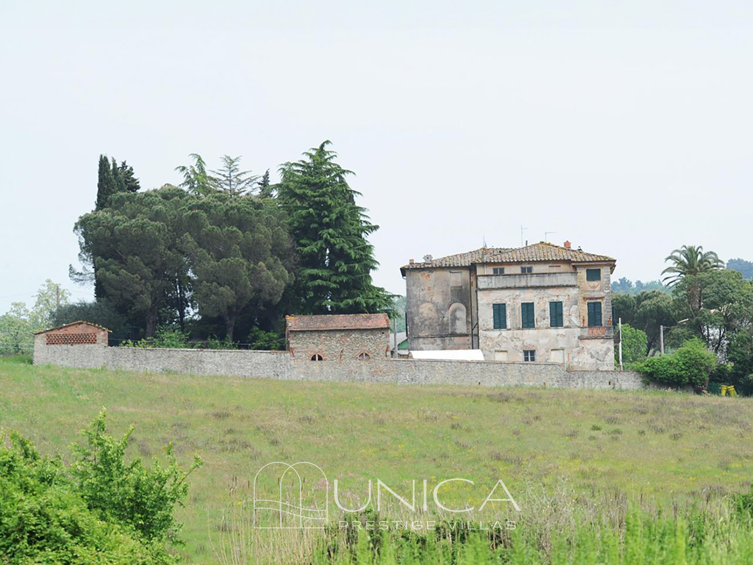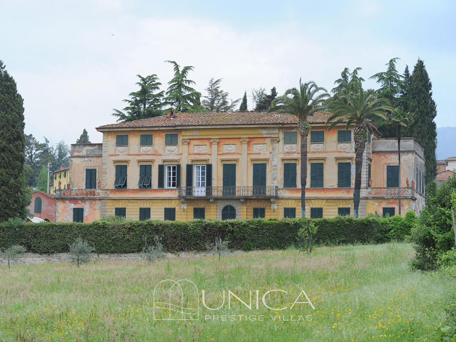 Nestled among the gentle hills just 8 km from the Renaissance walls of Lucca, this historic villa, designed and built in 1880 by Augusto Passaglia, enjoys a privileged position that combines privacy, natural beauty, and convenience. The surrounding landscape, characterized by vineyards, olive groves, and charming rural hamlets, offers a sense of tranquility without sacrificing access to services and major connections: the beaches of Versilia and Pisa International Airport are easily reachable, as are the region’s most renowned art cities. The area is known for its gastronomic routes, historic villas, and panoramic walking trails, making it ideal both for those seeking an authentic lifestyle and for those looking to enhance the property for hospitality purposes. The villa stands in a prestigious residential context, surrounded by other historic residences and greenery, offering a harmonious balance between tradition, landscape, and proximity to cultural destinations.