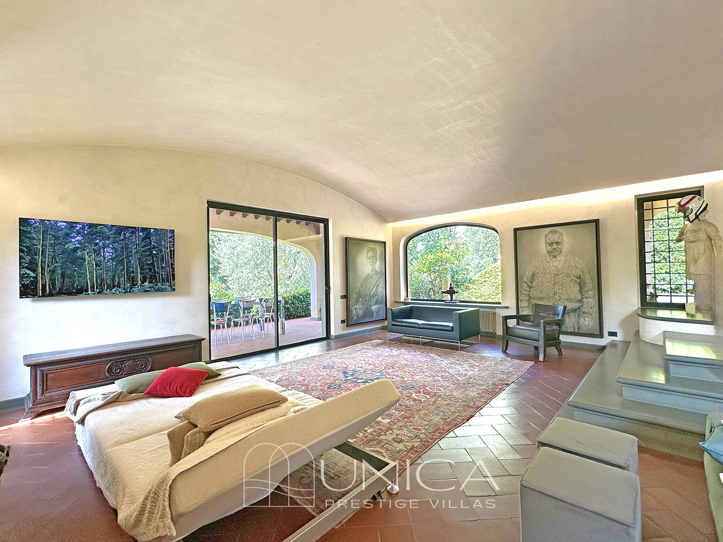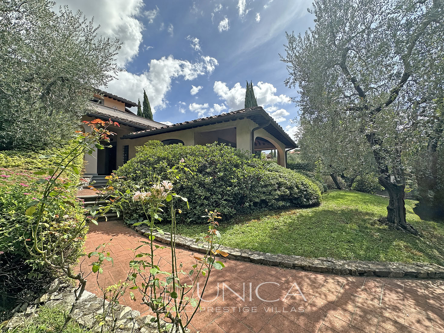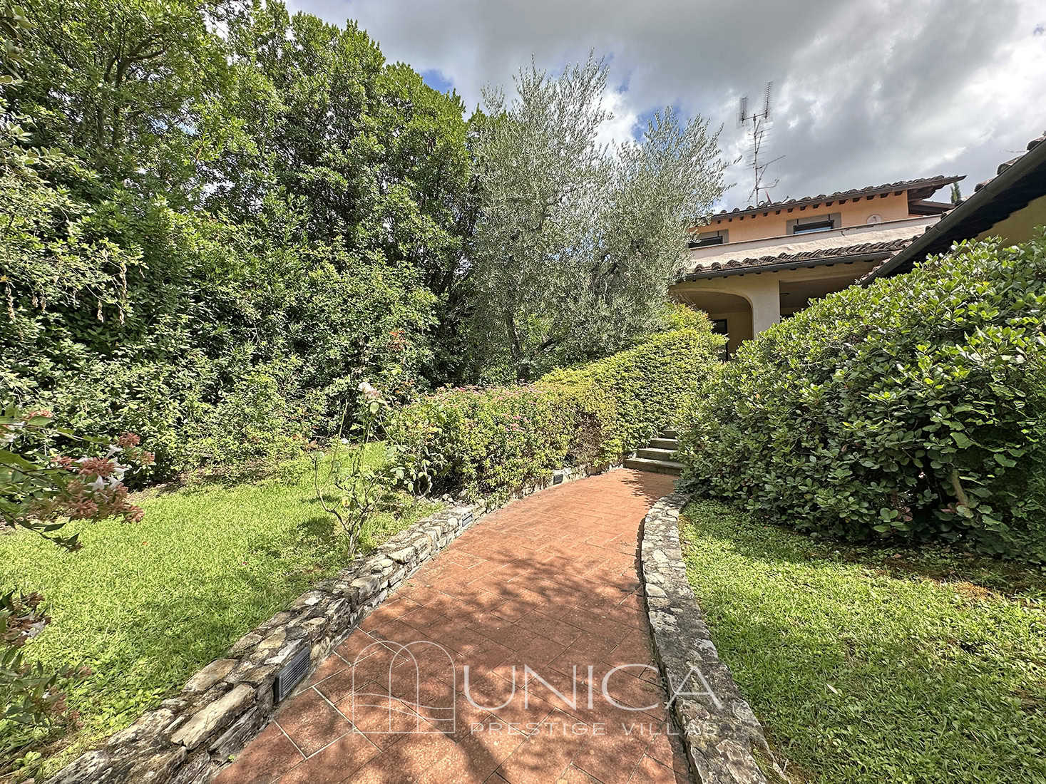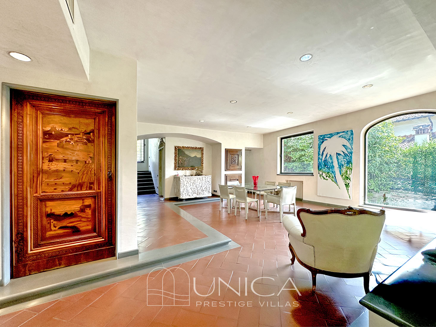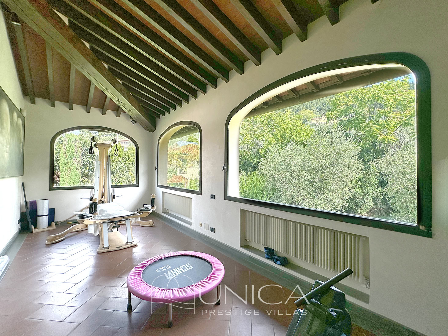 In one of the most prestigious and panoramic areas of Prato, nestled in the greenery of the Giolica hills yet just minutes from the city center, stands this elegant detached villa. A quiet and private retreat, ideal for those seeking peace without giving up the convenience of nearby services. Surrounded by a beautifully maintained garden, the property is distinguished by its generous spaces, refined finishes, and warm, welcoming atmosphere. Thanks to its strategic location, the villa enjoys a pleasant microclimate year-round and delightful views of the surrounding nature. Spread over three levels and served by an internal elevator, it is perfect as a primary residence or a prestigious home for entertaining, designed for both indoor and outdoor living. The interiors are bright and airy, with large windows that open onto the garden, creating a seamless connection between the house and its outdoor spaces.