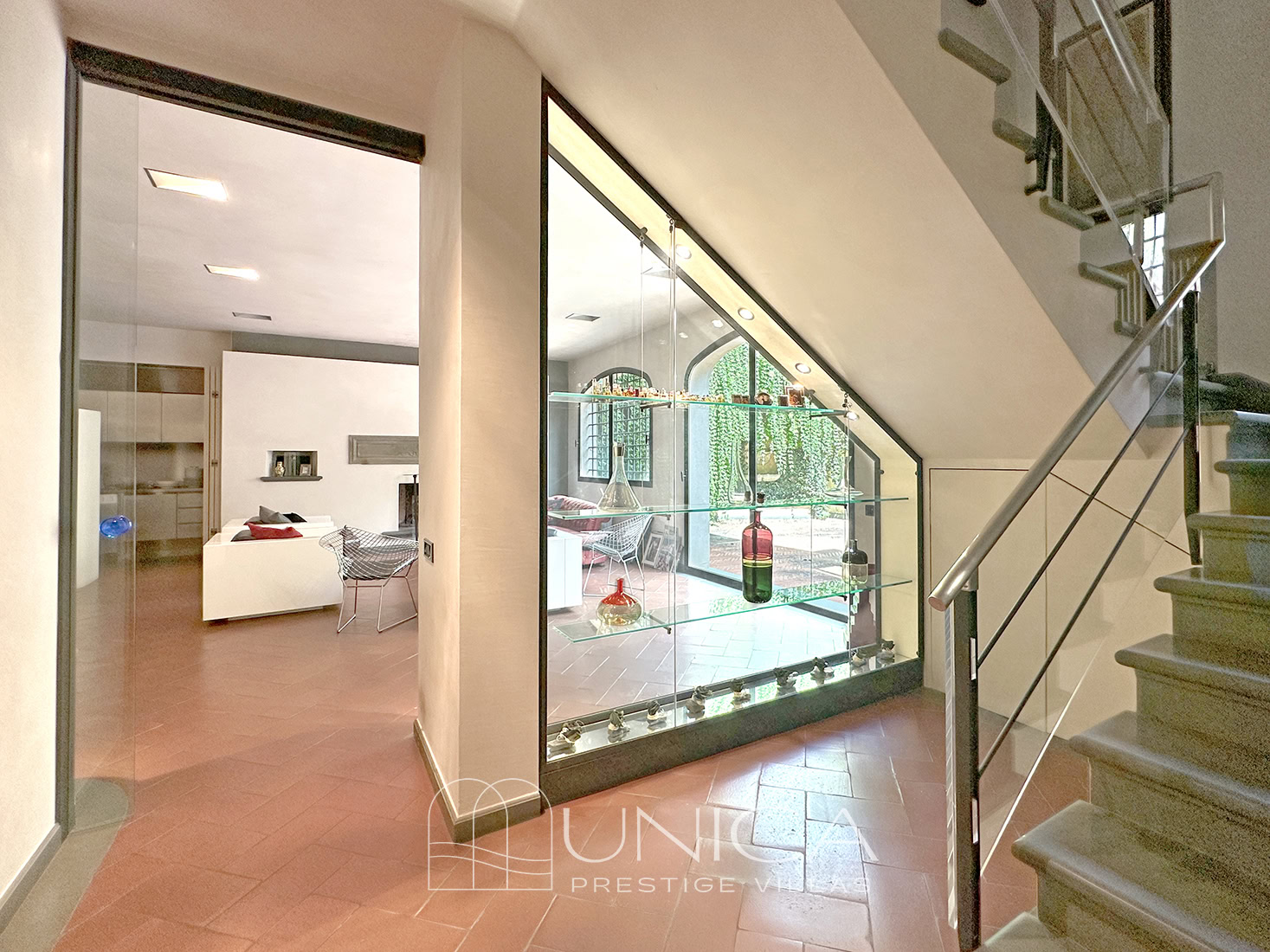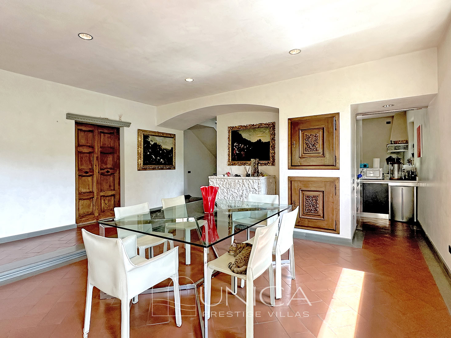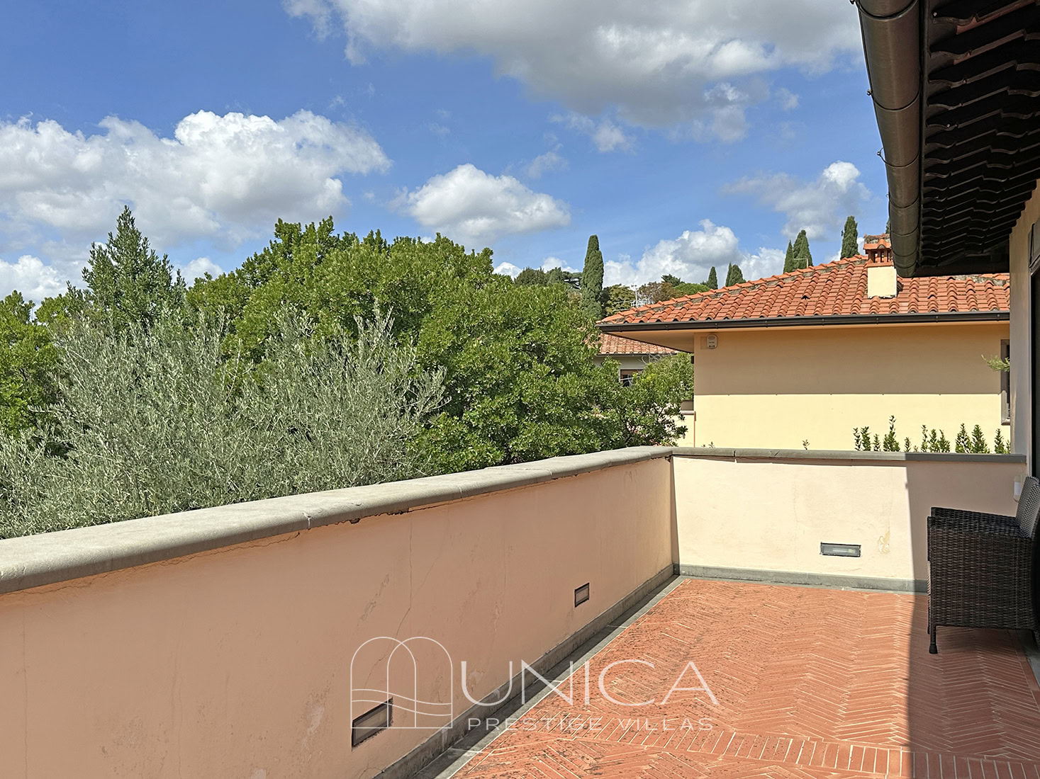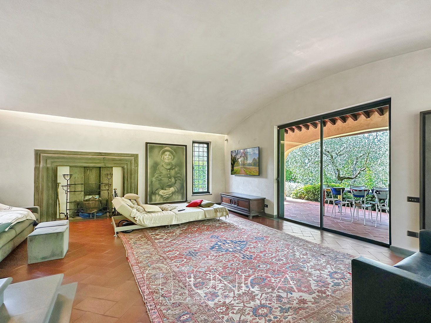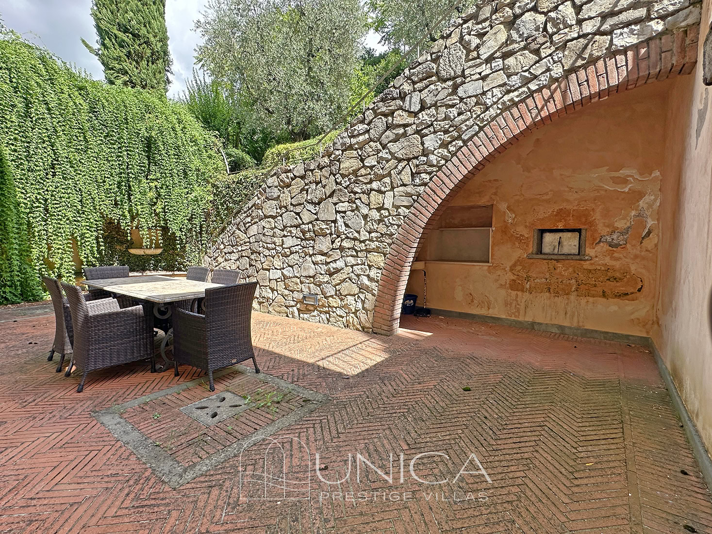 In one of the most prestigious and panoramic areas of Prato, nestled in the greenery of the Giolica hills yet just minutes from the city center, stands this elegant detached villa. A quiet and private retreat, ideal for those seeking peace without giving up the convenience of nearby services. Surrounded by a beautifully maintained garden, the property is distinguished by its generous spaces, refined finishes, and warm, welcoming atmosphere. Thanks to its strategic location, the villa enjoys a pleasant microclimate year-round and delightful views of the surrounding nature. Spread over three levels and served by an internal elevator, it is perfect as a primary residence or a prestigious home for entertaining, designed for both indoor and outdoor living. The interiors are bright and airy, with large windows that open onto the garden, creating a seamless connection between the house and its outdoor spaces.