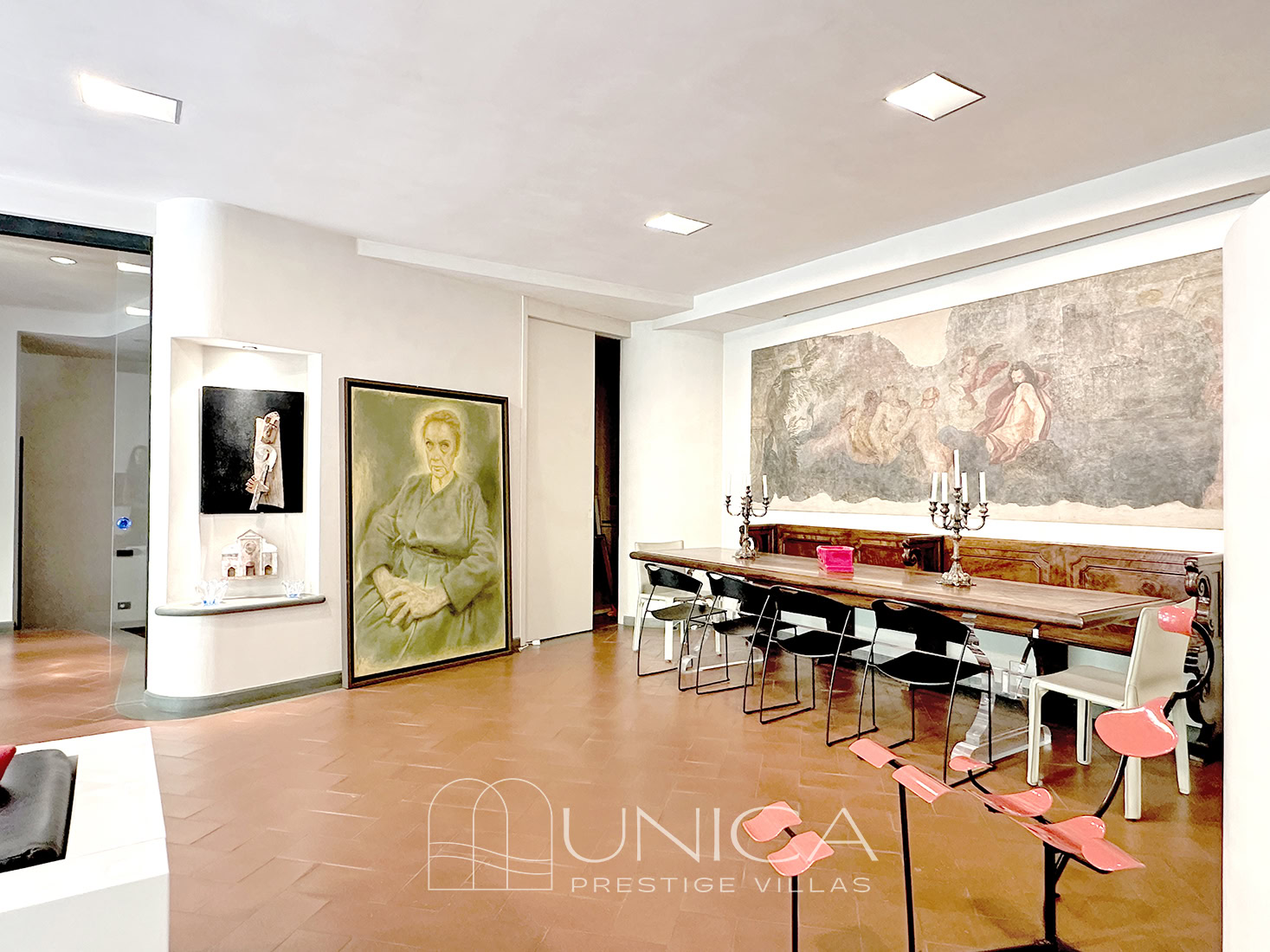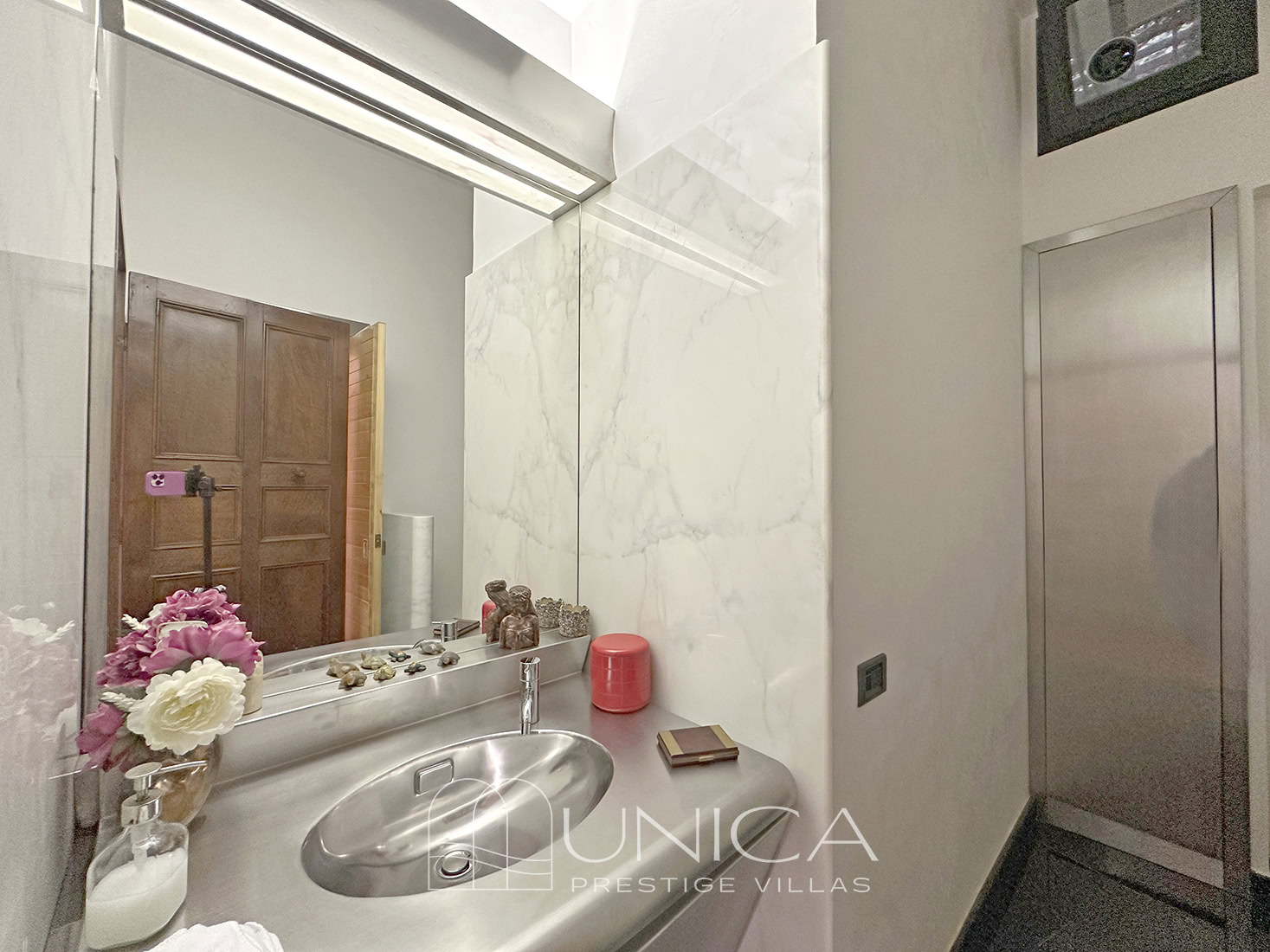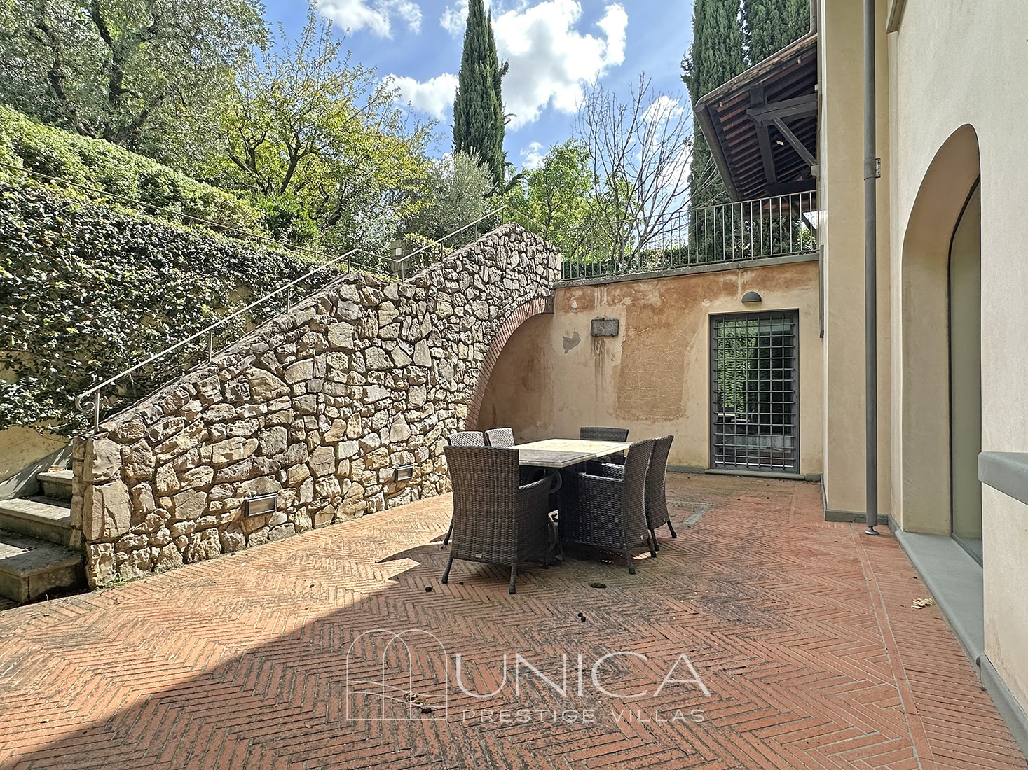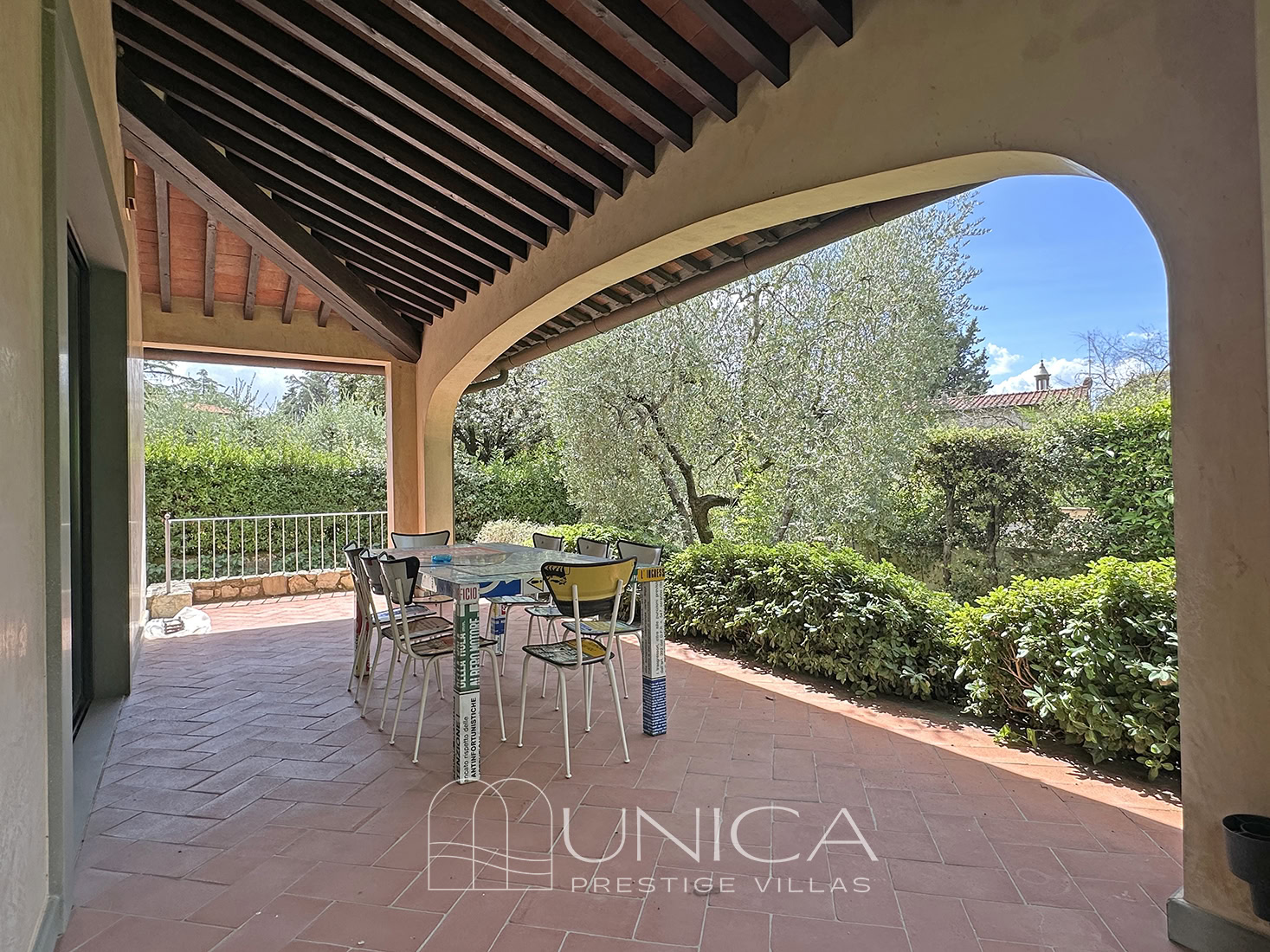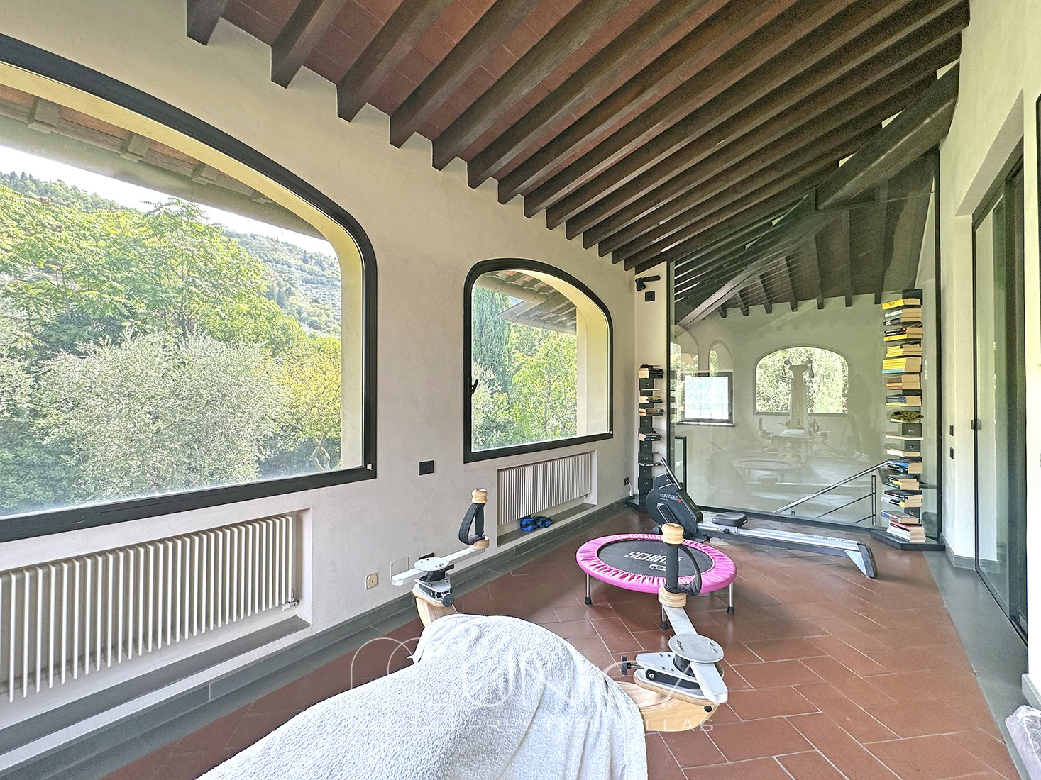 In one of the most prestigious and panoramic areas of Prato, nestled in the greenery of the Giolica hills yet just minutes from the city center, stands this elegant detached villa. A quiet and private retreat, ideal for those seeking peace without giving up the convenience of nearby services. Surrounded by a beautifully maintained garden, the property is distinguished by its generous spaces, refined finishes, and warm, welcoming atmosphere. Thanks to its strategic location, the villa enjoys a pleasant microclimate year-round and delightful views of the surrounding nature. Spread over three levels and served by an internal elevator, it is perfect as a primary residence or a prestigious home for entertaining, designed for both indoor and outdoor living. The interiors are bright and airy, with large windows that open onto the garden, creating a seamless connection between the house and its outdoor spaces.