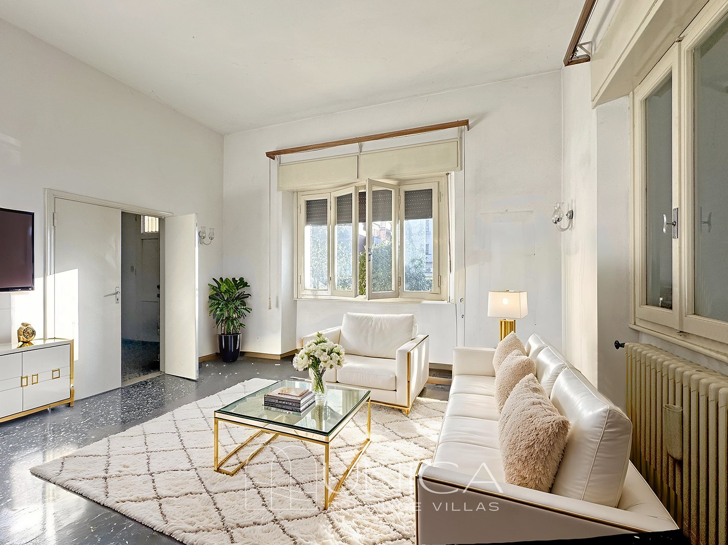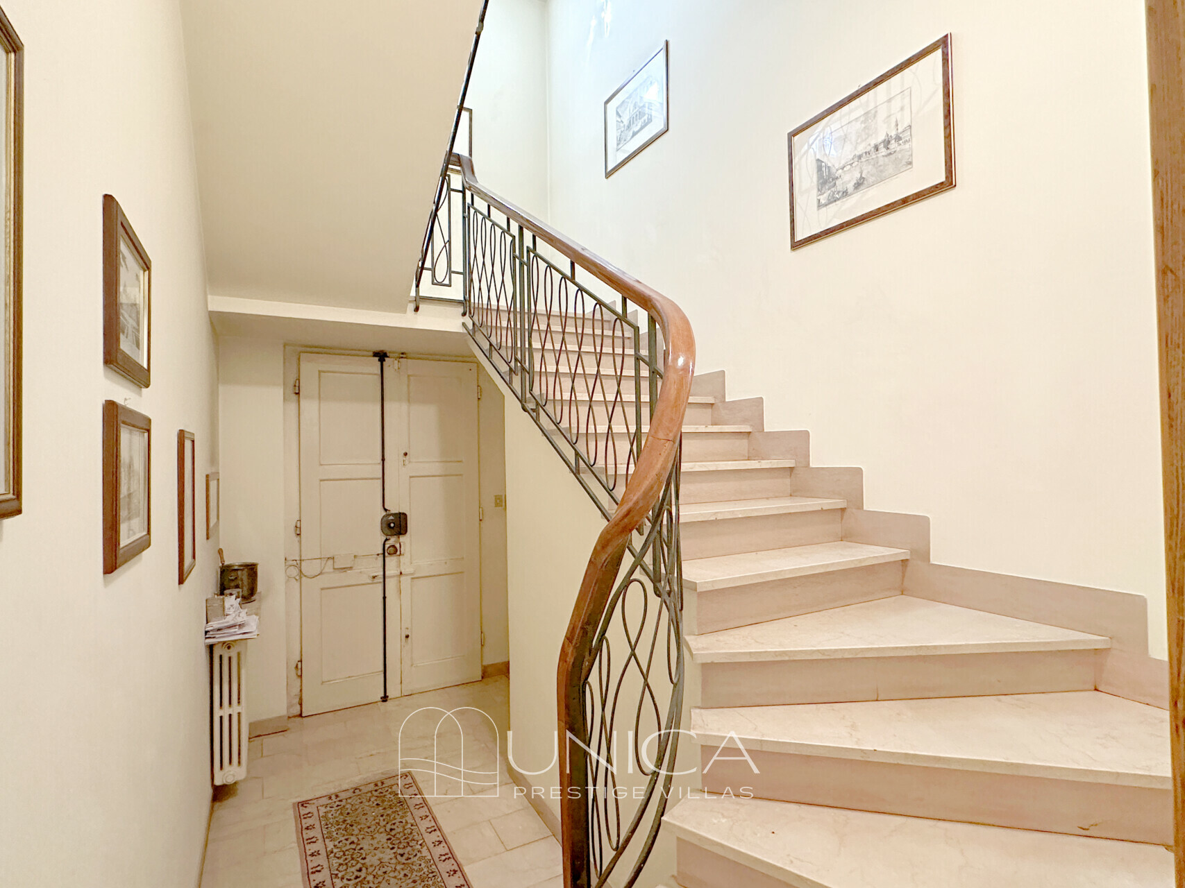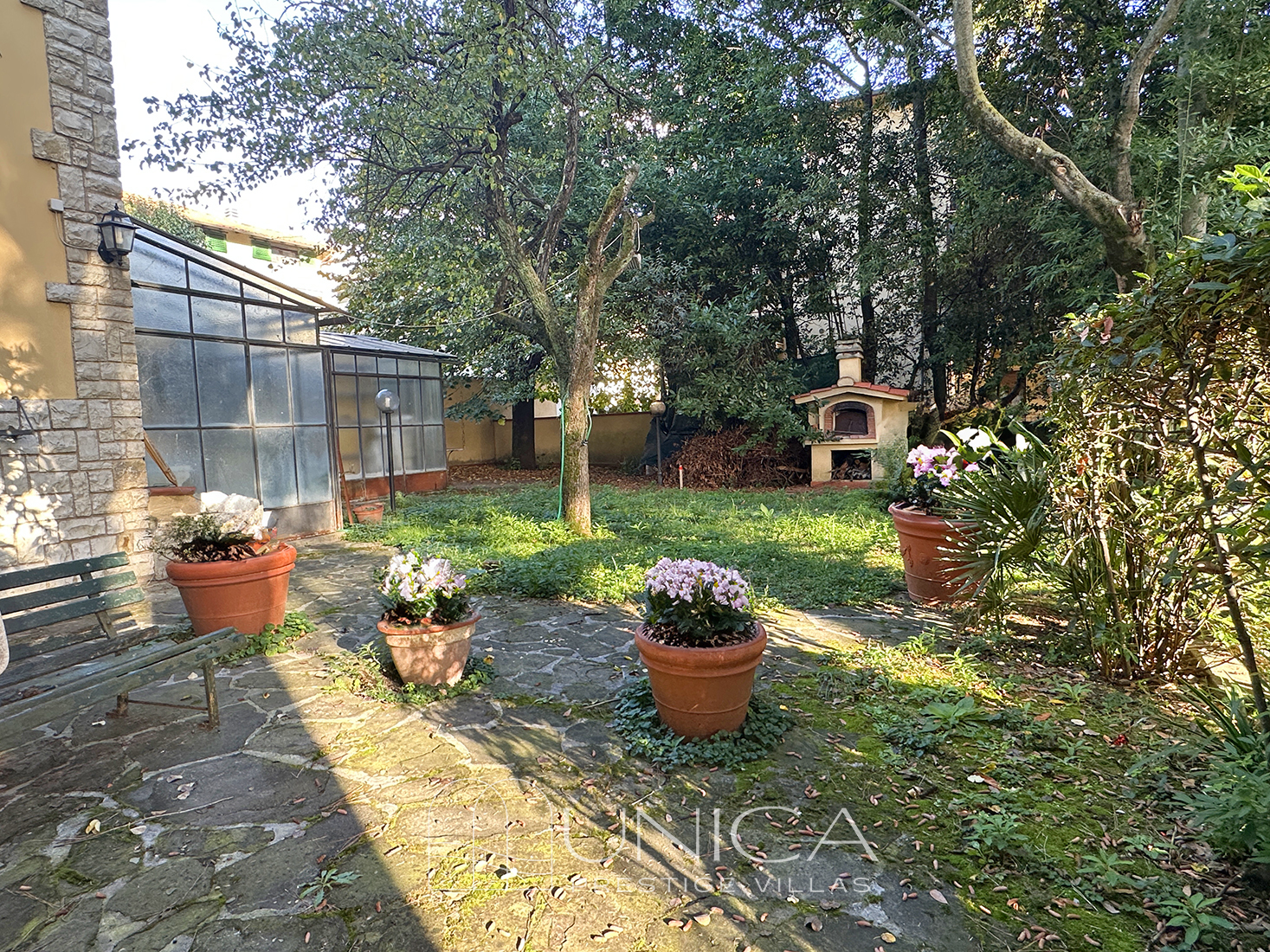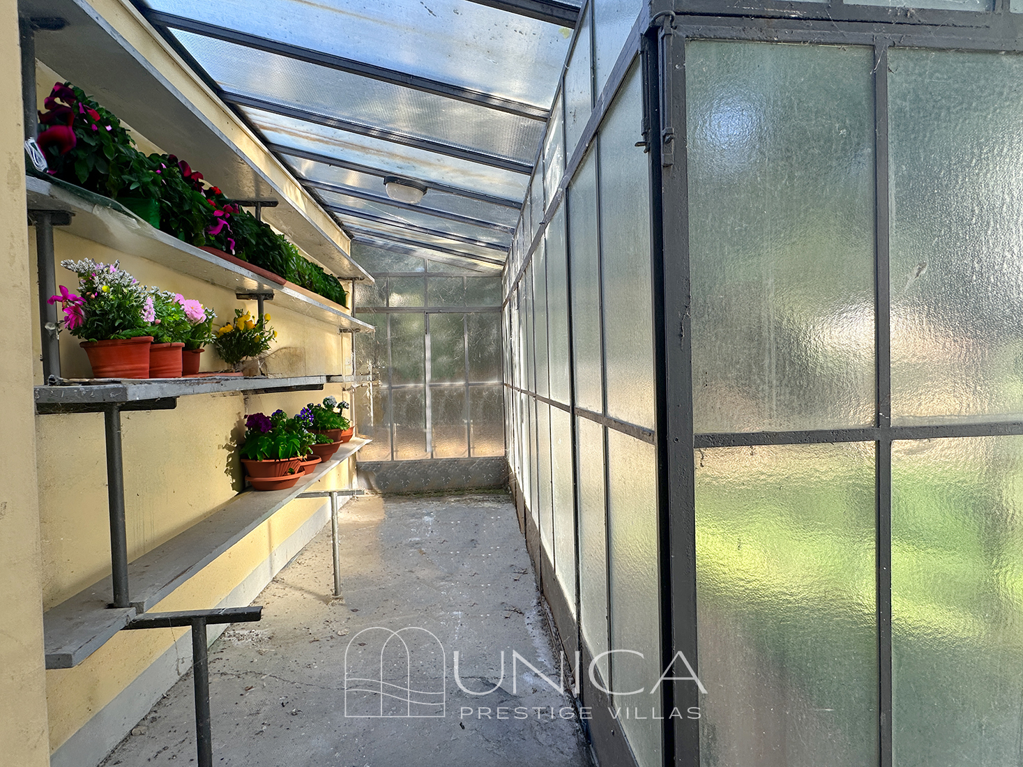 Ground floor (to renovate) 190 mq: accessed from the front entrance. The layout comprises a living room with dining area, kitchen and large breakfast room directly connected to the greenhouse and outdoor patio, bringing the garden into daily life. The level is completed by two bedrooms and one bathroom. Rational, light-filled rooms provide an excellent canvas for a tailored refurbishment.