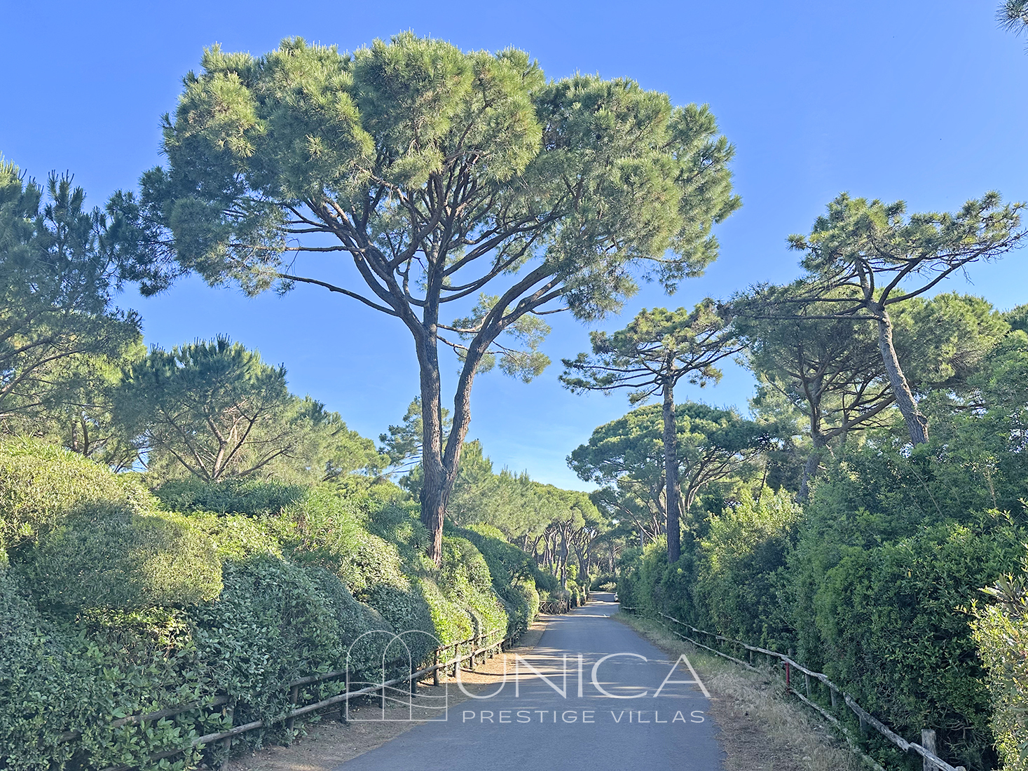 The villas are part of an exclusive complex of 200 properties, established in the 1950s by Count Piero Ginori Conti. From the private roads of the pine forest, you can access the villas, nestled within private parks and shielded by hedges of native plants like corbezzoli (strawberry trees) and junipers, ensuring absolute privacy.