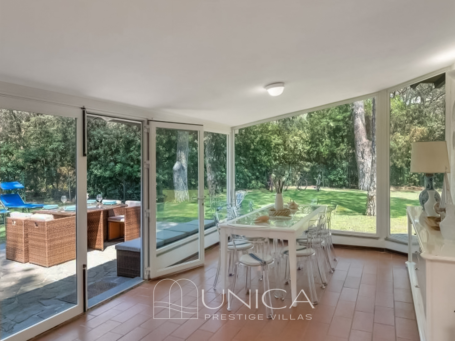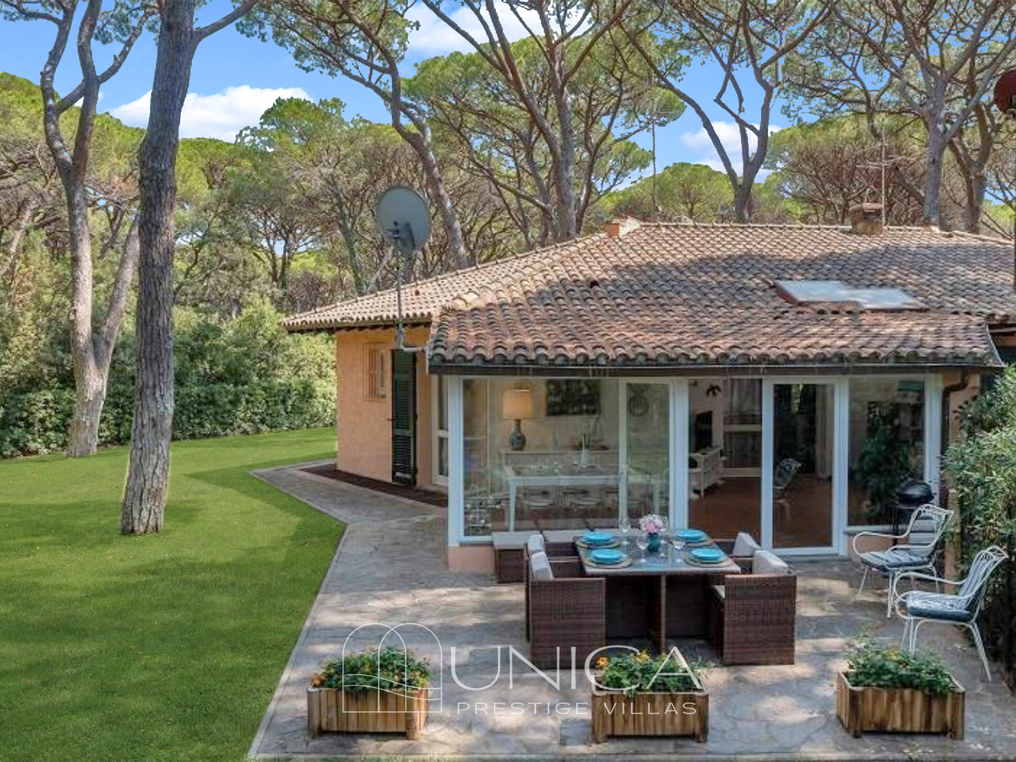 Situata nel cuore della suggestiva Pineta di Roccamare, villa Gloria è un rifugio dove l’eleganza si fonde con la bellezza incontaminata della natura, in uno degli angoli più esclusivi della Maremma. Il comprensorio, concepito negli anni Cinquanta dal conte Piero Ginori Conti, ospita circa 200 ville immerse in una lussureggiante vegetazione mediterranea. L’accesso alla zona è protetto da una recinzione e controllato da una portineria attiva 24 ore su 24, che garantisce l’ingresso esclusivo solo ai residenti e ai loro ospiti. Le strade interne, riservate ai soli residenti, conducono ciascuna villa attraverso percorsi privati.
