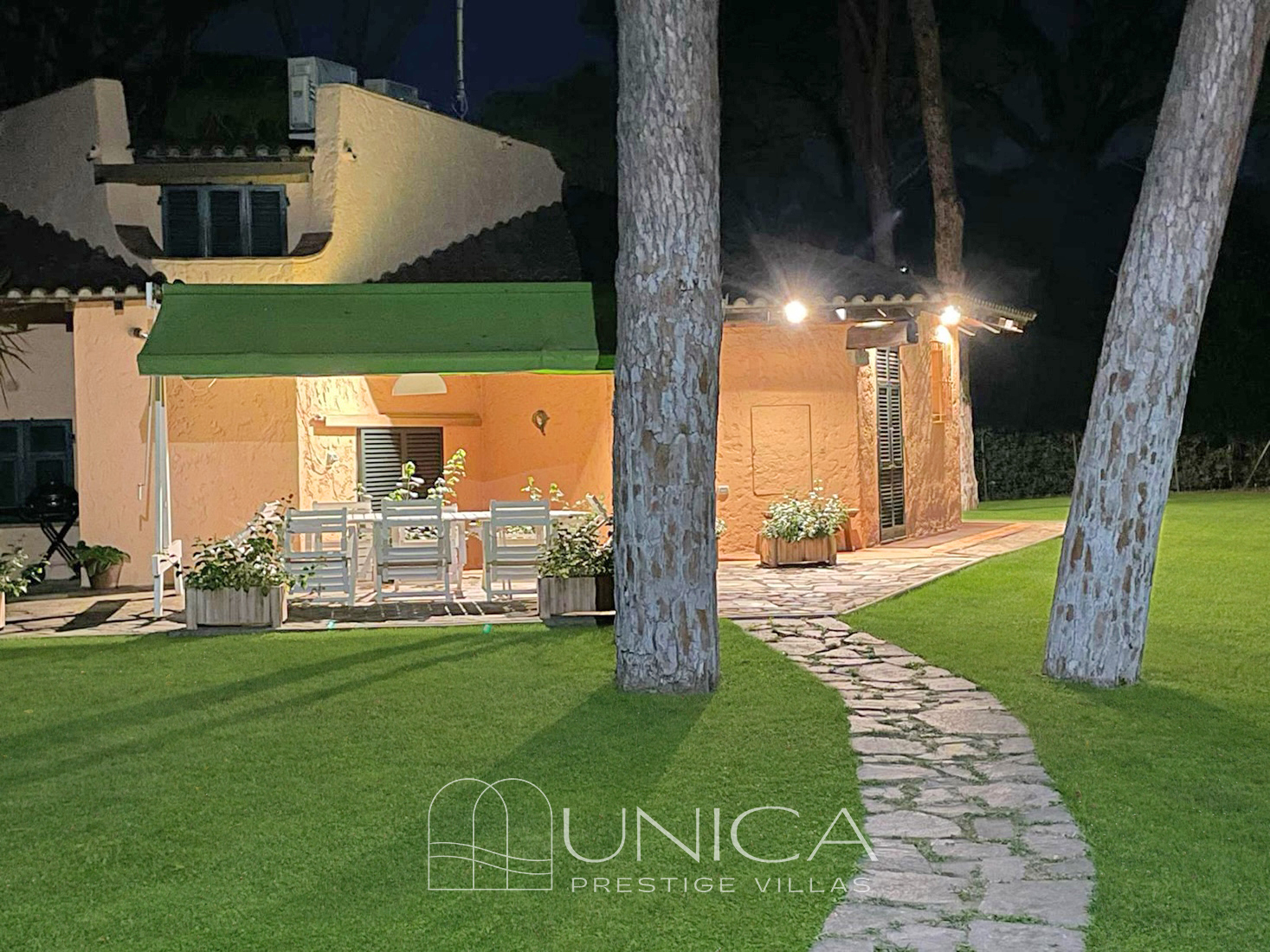 La villa, perfettamente integrata nel paesaggio, si distingue per la facciata dai toni caldi, che si armonizzano con l’ambiente circostante. Il giardino che la circonda, ben curato e ricco di ampi spazi verdi, assicura un’incredibile privacy. I due patii esterni, recentemente rinnovati, arricchiscono ulteriormente gli spazi: quello anteriore, ideale per pranzi all’aperto, e quello posteriore, un’accogliente zona living perfetta per il relax. L’ombra dei pini circostanti crea un’atmosfera di pace e riservatezza. Una doccia esterna con acqua calda invita a rinfrescarsi all’aria aperta, godendo della serenità del giardino. A breve distanza, circa 1 km, si trova la spiaggia privata di Roccamare, un angolo esclusivo riservato ai residenti, con capanno e bungalow sulla sabbia.